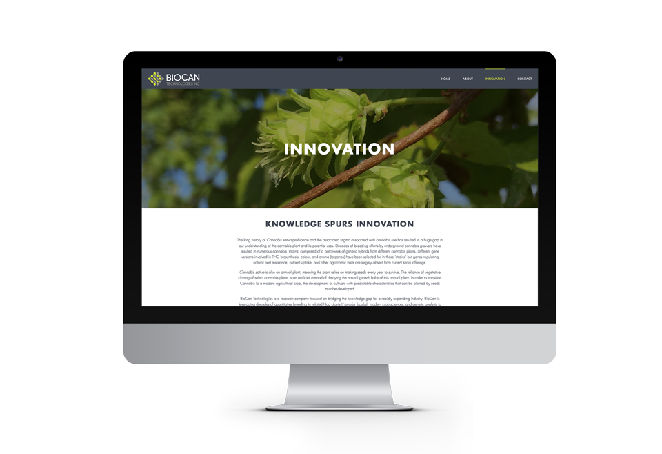 Innovation in the emerging cannabis industry is the very cornerstone of BioCan Technologies identity. We assisted the BioCan team by developing a website, identity, and a tagline that truly sets apart a unique team of scientists and communicates their edge in this industry.